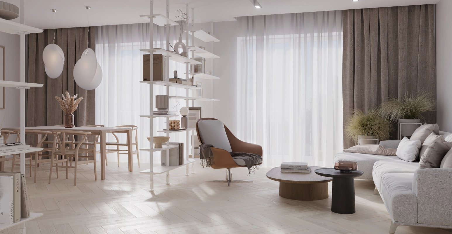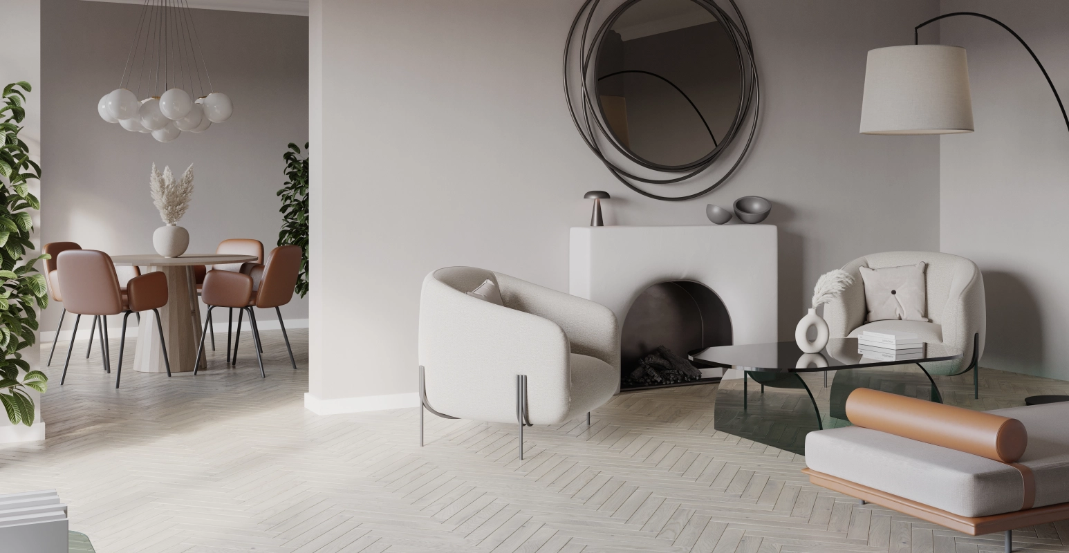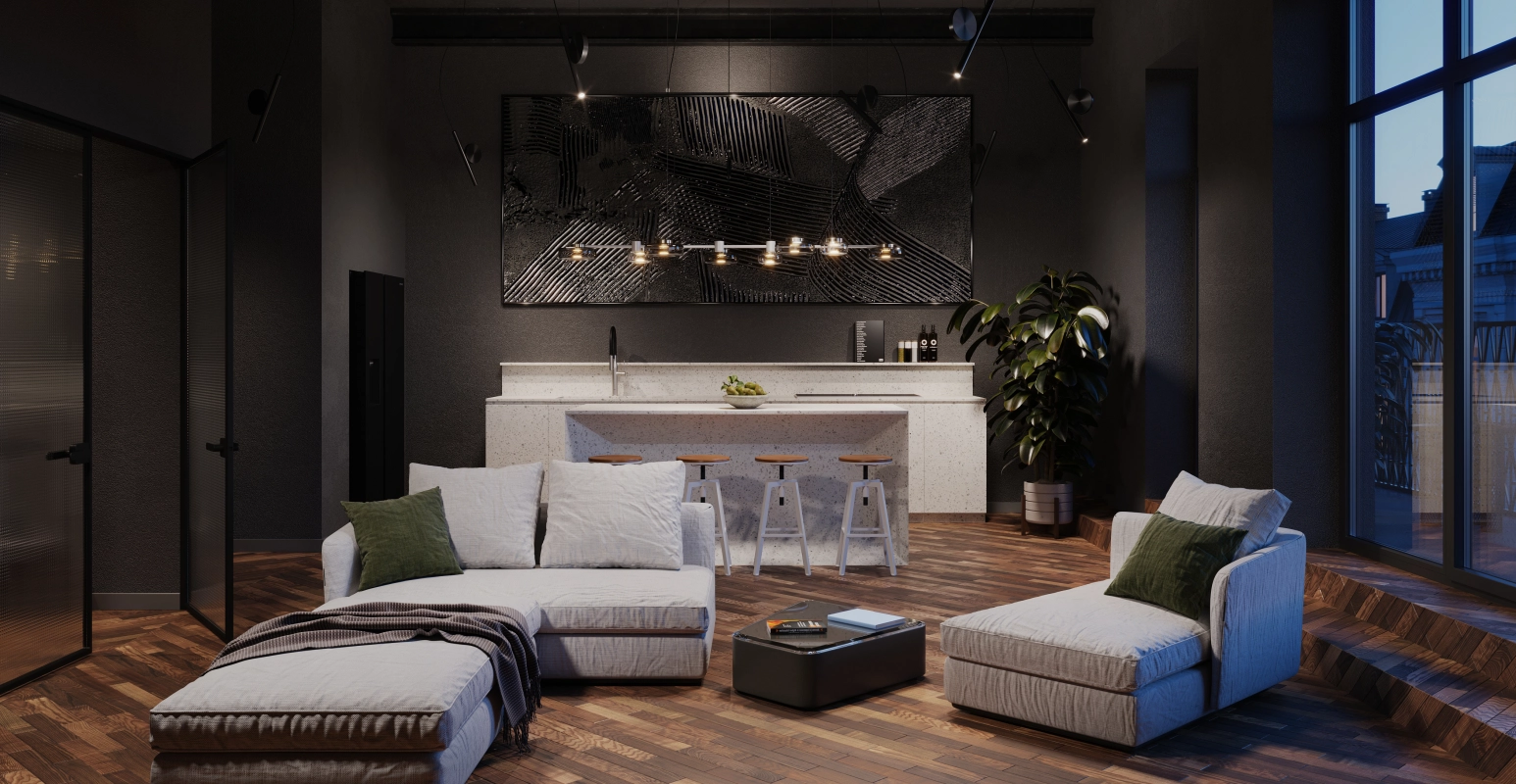Each of the interior concepts was created from scratch for a specific plank model. This allowed us to perfectly match the room layout, lighting, furniture, materials, and accessories.