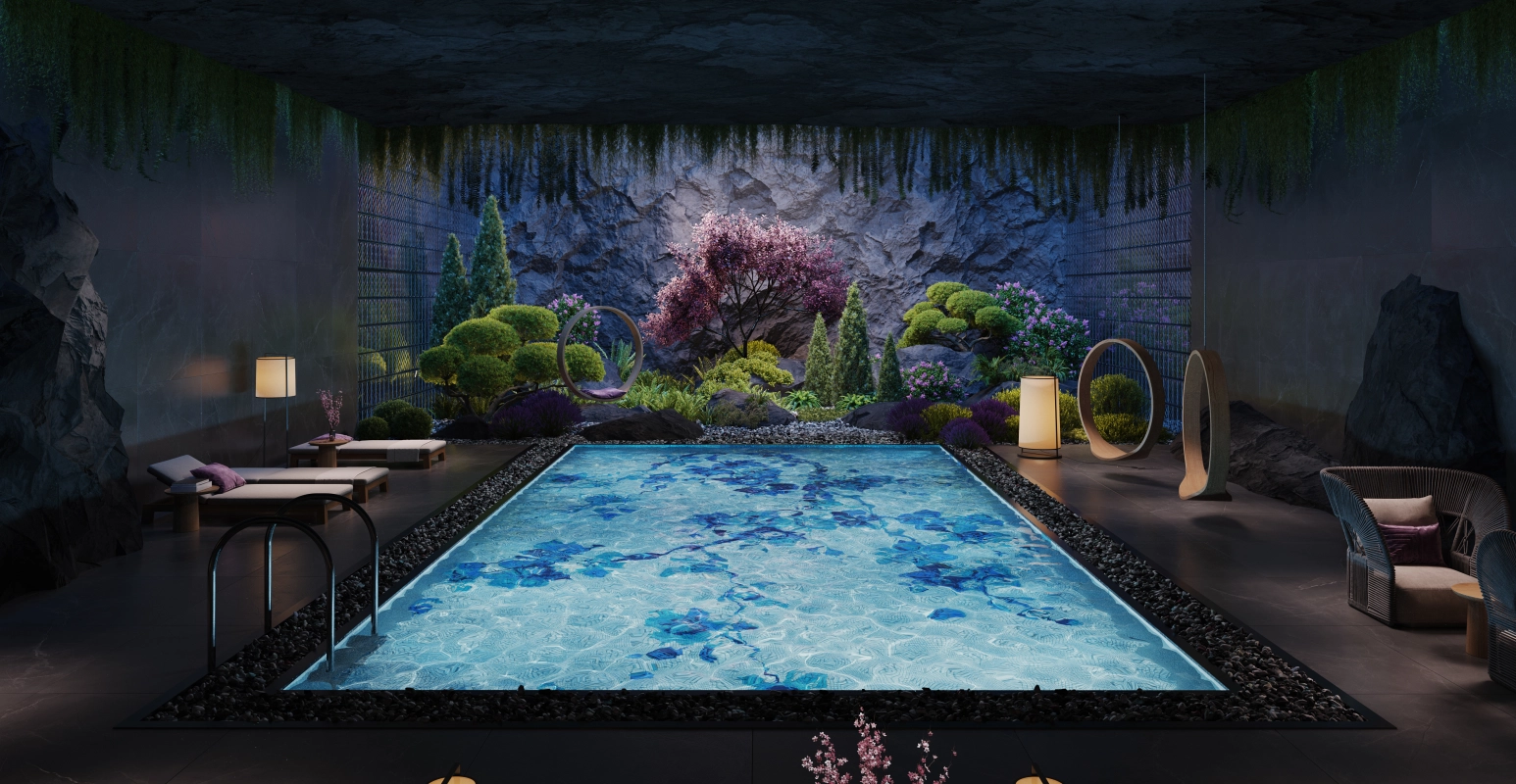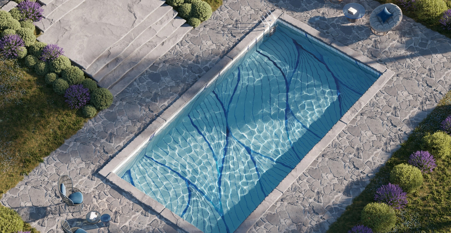 We paid the utmost attention to showcasing reflections and the caustic effect of water, which influence the perception of the mosaics.